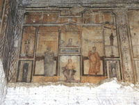 As you enter the Golden Home, your imagination works overtime: the site is now immersed in dirt and semidarkness. If you were Nero's guests, however, you would enjoy his home as shafts of sunlight danced on gold-leaf and gems imbedded in the walls; warm breezes would filter in through the rooms causing light linen draperies to billowed in the windows; as you sipped an excellent vintage of red wine, you would stroll from room to room, marveling at the Emperor's fanciful sculpture collection. You can imagine it all still perfectly today! The two sites, San Clemente and the Domus Aurea can be visited together on the same day or be seen separately. The entrance ticket to the Domus Aurea costs € 6.50 and is booked in advance. |