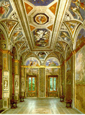 During a visit that usually lasts a little less than 3 hours, we cover Chigi's life in detail, discussing his financial success, his philanthropy, and his exuberant family life. After that, we examine the architectural style that inspired his home and other great villas to come. Then we step inside, appreciating some of the most outrageously personalized Renaissance art still visible in Rome. With a little time, patience, and imagination, the halls of the summer home slowly come alive with courtiers, languid poets, fine musicians, and an intrepid cardinal or two. And if we are lucky, Chigi's spirit, still wearing its bunny slippers and savoring a glass of white wine, will accompany us through his dream home's rooms. |